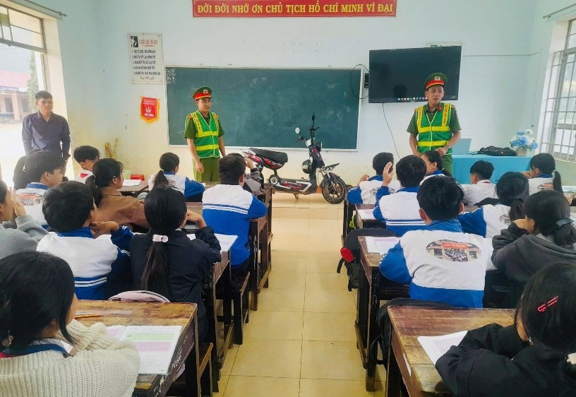 Bên cạnh công tác tuần tra, kiểm soát, Công an xã Quảng Hòa phối hợp với Ban Giám hiệu các trường THCS, THPT trên địa bàn tổ chức tuyên truyền, phổ biến kiến thức về trật tự, an toàn giao thông, các đặc tính, thông số kỹ thuật của xe đạp điện, xe máy điện để học sinh nắm rõ quy định pháp luật.
