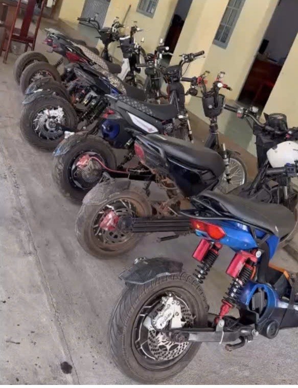 Xe đạp điện độ chế bị tạm giữ tại Công an xã Quảng Khê