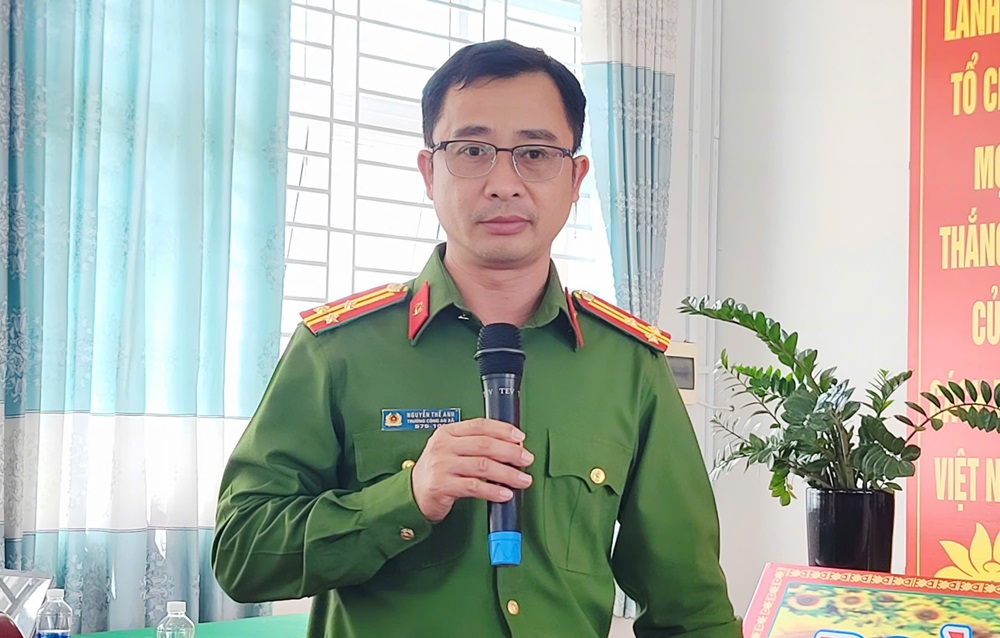Đồng chí Nguyễn Thế Anh - Trưởng Công an xã giải đáp thắc mắc của người dân về công tác đảm bảo an ninh, trật tự