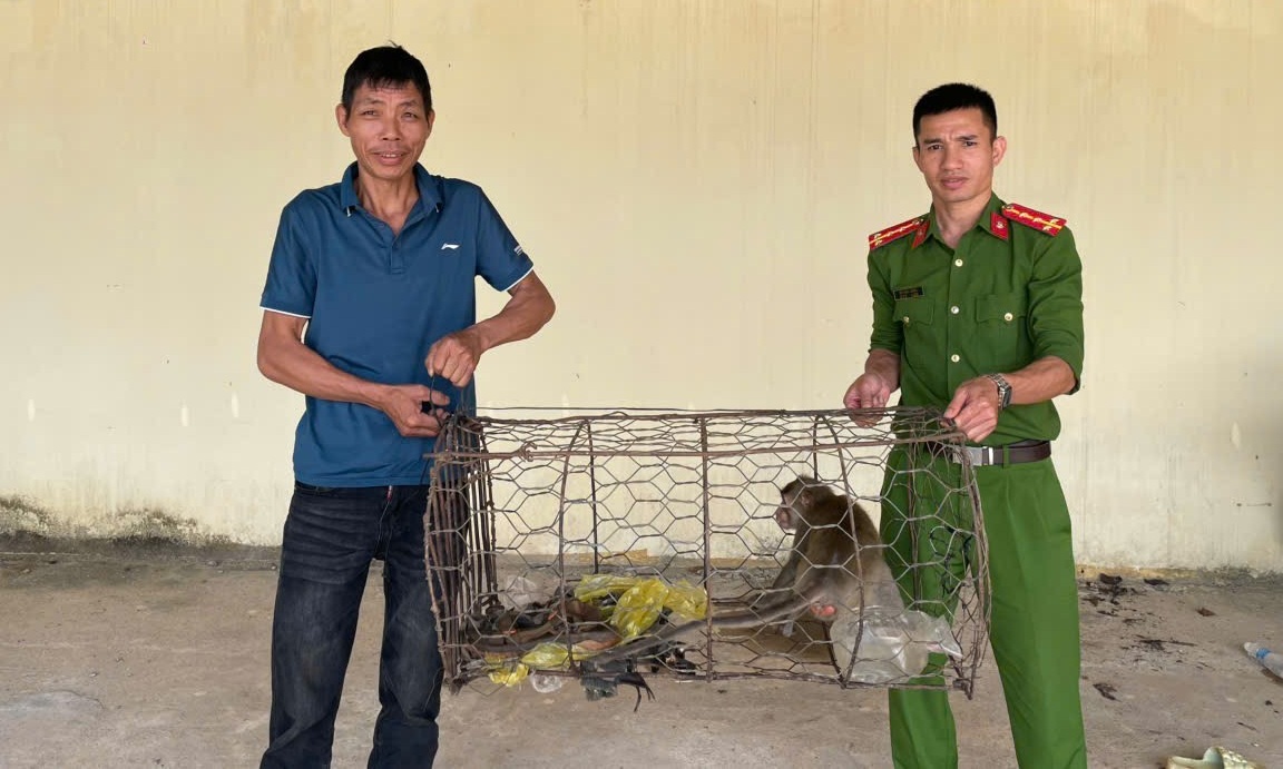 Ngày 10/04/2026, Công an xã Quảng Khê tiếp nhận 01 cá thể khỉ đuôi dài (tên khoa học: Macaca fascicularis) thuộc nhóm IIB,