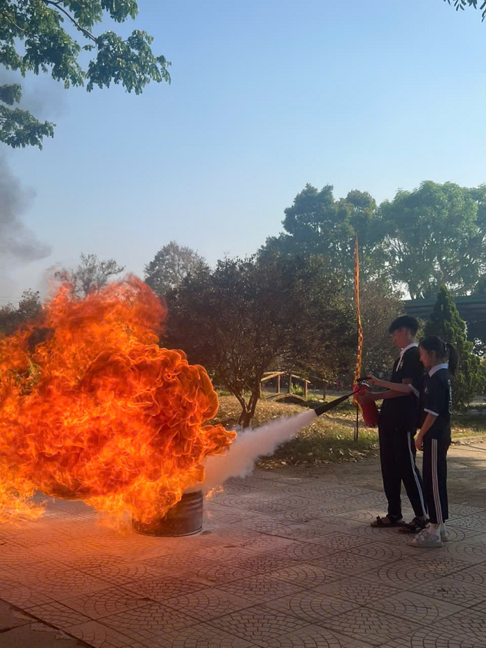 Tại buổi tuyên truyền, cán bộ Công an xã hướng dẫn học sinh nhận diện nguy cơ cháy nổ, phổ biến nguyên nhân và hậu quả của hỏa hoạn; đồng thời tổ chức thực hành sử dụng bình chữa cháy xách tay với các bước cơ bản như rút chốt an toàn, hướng vòi vào gốc lửa, bóp cò và dập tắt đám cháy. Học sinh còn được hướng dẫn kỹ năng thoát hiểm an toàn khi xảy ra cháy như di chuyển thấp người, dùng khăn ướt che mũi miệng và nhanh chóng tìm lối thoát an toàn.