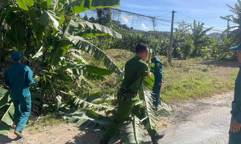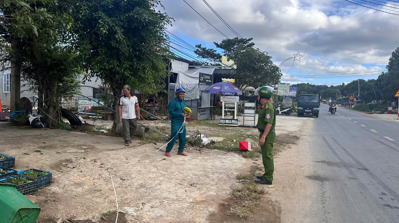 Cán bộ Tổ Cảnh sát trật tự tích cực, chủ động phối hợp dọn dẹp cây trồng, vật cản ven đường