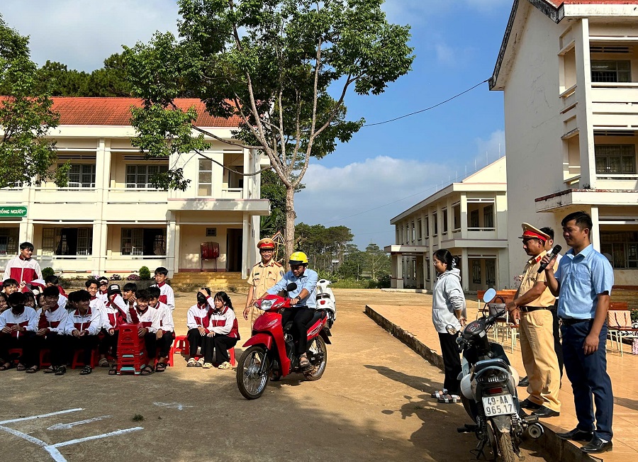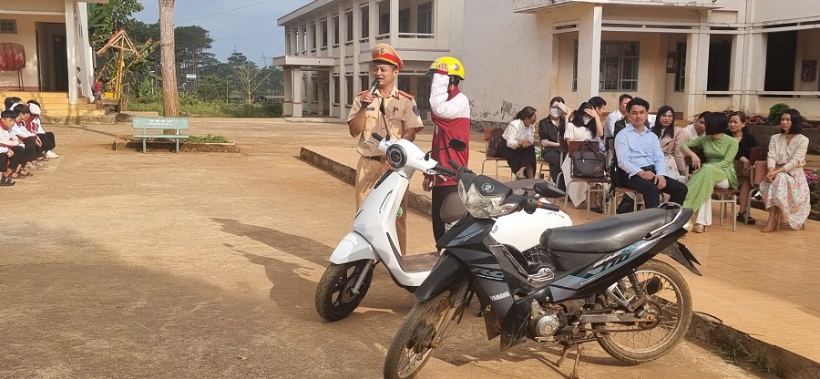 Tại buổi tuyên truyền, học sinh được phổ biến các kiến thức cơ bản về Luật Giao thông đường bộ, kỹ năng tham gia giao thông an toàn, đồng thời chỉ ra những vi phạm thường gặp ở lứa tuổi học sinh như không đội mũ bảo hiểm khi ngồi trên xe mô tô, xe gắn máy; đi xe đạp dàn hàng ngang; tụ tập, đùa giỡn khi tham gia giao thông. Bên cạnh đó, các em còn được trao đổi, giải đáp những tình huống thực tế nhằm nâng cao kỹ năng xử lý khi tham gia giao thông.