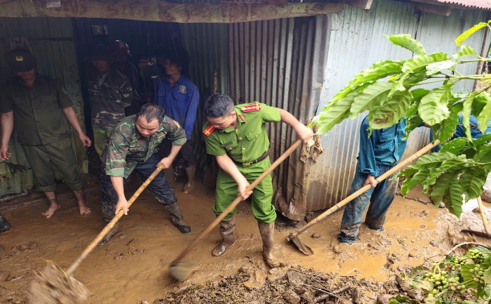 Bên cạnh đó, lực lượng Công an xã còn phối hợp với Dân quân, lực lượng an ninh cơ sở và đoàn viên thanh niên hỗ trợ người dân dọn dẹp bùn đất, vệ sinh môi trường, bảo đảm an toàn sau mưa lũ, giúp bà con sớm ổn định sinh hoạt.