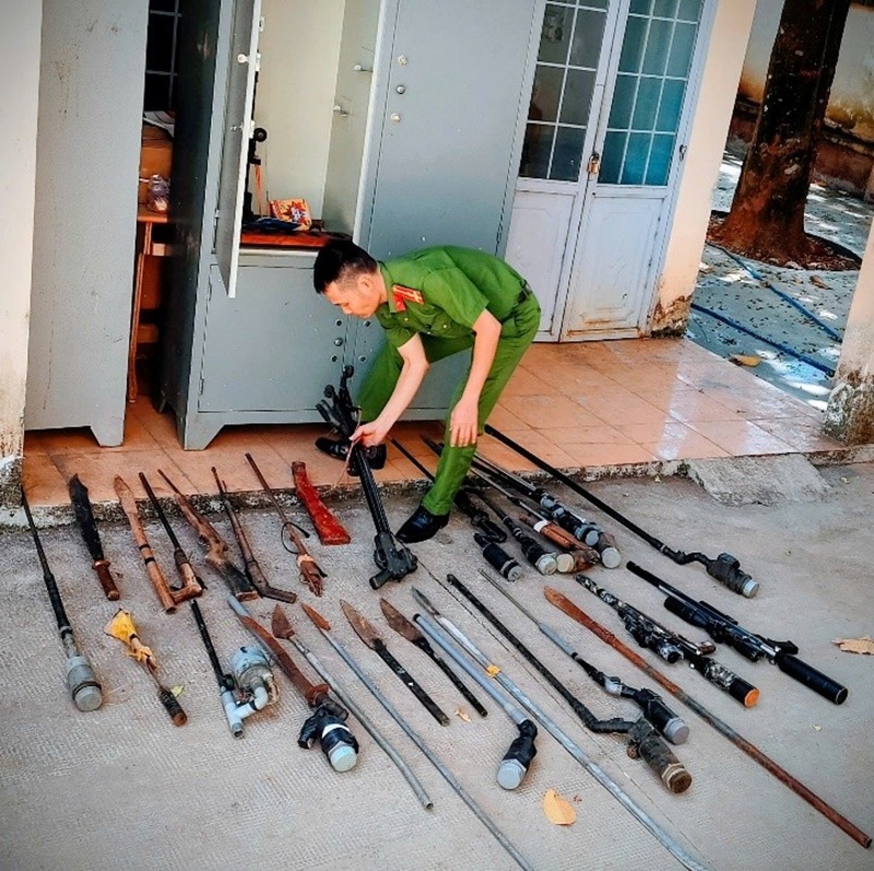 Nhờ làm tốt công tác dân vận, nhiều hộ dân đã tự nguyện đến trụ sở Công an xã giao nộp súng tự chế, dao, mã tấu và các công cụ hỗ trợ khác.