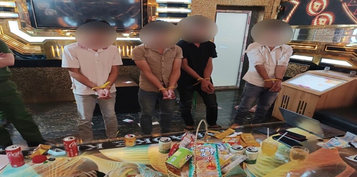 Các đối tượng bị bắt quả tang hành vi tổ chức sử dụng trái phép chất ma túy
