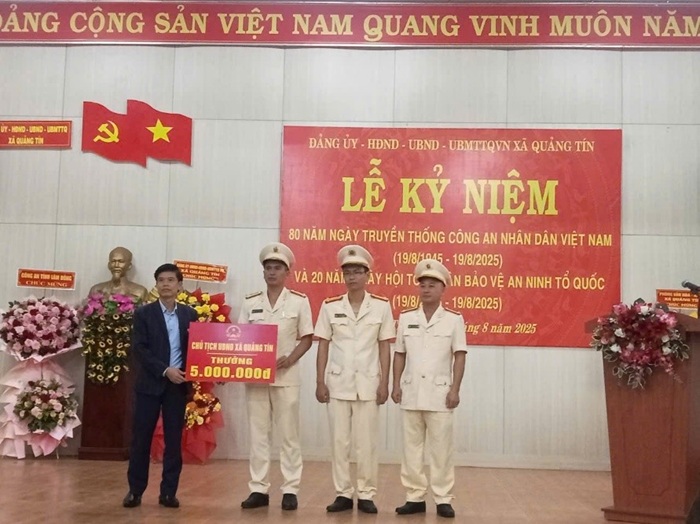 Chủ tịch UBND xã đã thưởng cho lực lượng Công an xã Quảng Tín trong dịp kỷ niệm 80 năm Ngày truyền thống Công an nhân dân.