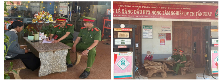 Bên cạnh đó, lực lượng Công an xã tăng cường nắm tình hình, rà soát hoạt động của các cửa hàng, đại lý kinh doanh xăng dầu trên địa bàn; phối hợp kiểm tra việc chấp hành các quy định về niêm yết giá, thời gian bán hàng, nguồn gốc hàng hóa cũng như các điều kiện bảo đảm an toàn phòng cháy, chữa cháy. Qua đó kịp thời phát hiện, kiến nghị xử lý các hành vi vi phạm như bán hàng cầm chừng, găm hàng chờ tăng giá hoặc kinh doanh không đúng quy định.