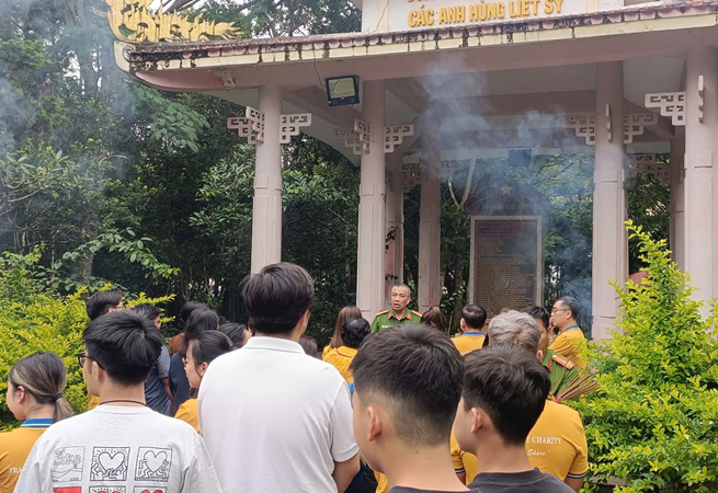 Đoàn dâng hương tại Bia tưởng niệm các Anh hùng liệt sỹ tiểu đoàn 840 Miền Đông Nam bộ tại Bon Đắk Huýt, xã Quảng Trực