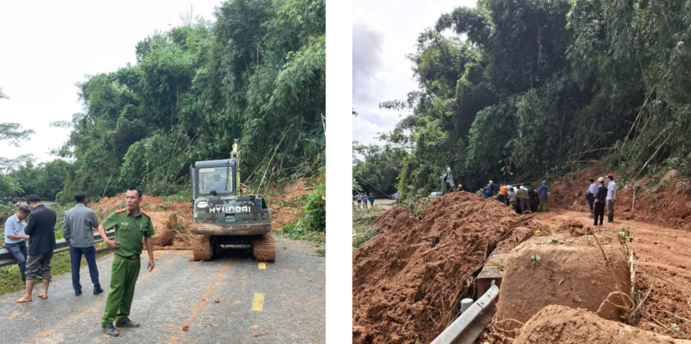 Trước tình hình đó, Công an xã Sơn Điền đã nhanh chóng thiết lập rào chắn cảnh báo, phối hợp với người dân tổ chức trực chốt tại hai đầu điểm sạt lở, hướng dẫn người dân và phương tiện quay đầu, lựa chọn tuyến đường thay thế an toàn. Đồng thời, lực lượng đã phối hợp với chính quyền địa phương huy động máy móc, phương tiện cơ giới và nhân lực tiến hành dọn dẹp, san gạt đất đá, giải phóng mặt đường.