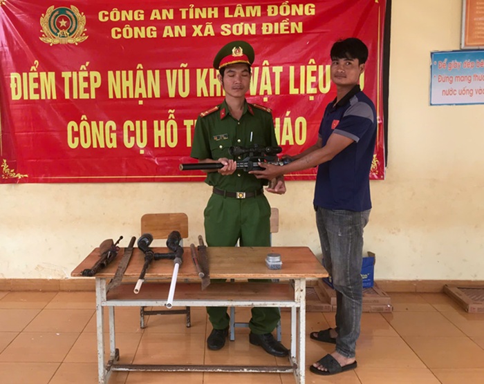 Qua đó, đã vận động thu hồi và tiếp nhận: 02 súng hơi, 04 súng cồn, 06 dao kiếm tự chế và 436 viên đạn chì; qua thông tin của nhân dân, đã kịp thời phối hợp Ban Chỉ huy Quân sự xã xử lý 03 quả đạn pháo loại 120mm.