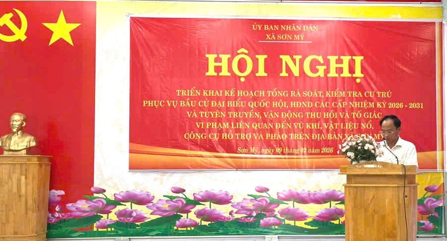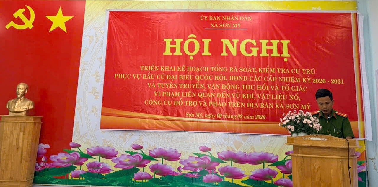 Chiều ngày 09/02/2026, Công an xã Sơn Mỹ, tỉnh Lâm Đồng đã tham mưu Ủy ban nhân dân xã tổ chức Hội nghị triển khai Kế hoạch tổng rà soát, kiểm tra cư trú trên địa bàn phục vụ bầu cử đại biểu Quốc hội và Hội đồng nhân dân các cấp nhiệm kỳ 2026 – 2031; gắn với tuyên truyền công tác phòng cháy, chữa cháy và các quy định pháp luật về vũ khí, vật liệu nổ, công cụ hỗ trợ, pháo trước Tết Nguyên đán Bính Ngọ 2026.