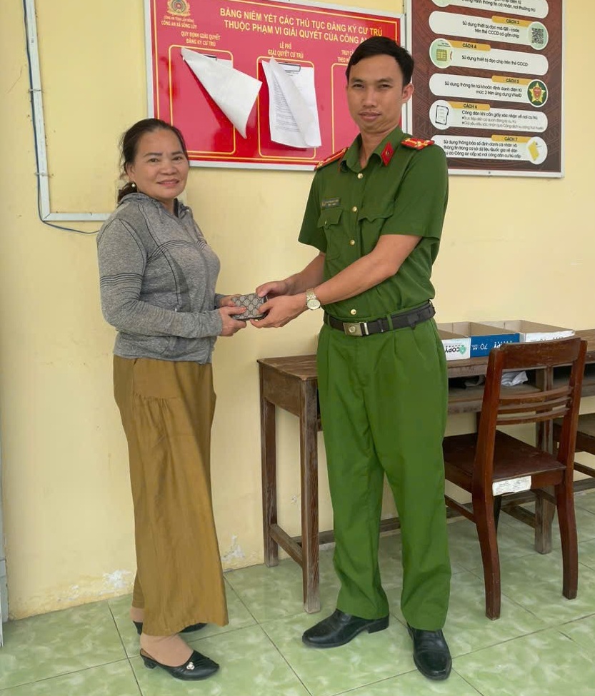 Qua xác minh, lực lượng Công an xã xác định chủ nhân là chị Hồ Thị Thi Mỹ (SN 1967, trú thôn Hòa Bình, xã Sông Lũy). Công an xã đã liên hệ và trao trả đầy đủ tài sản cho chị Mỹ.