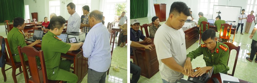 Cán bộ Công an xã và tổ chức năng tận tình hỗ trợ người dân làm định danh điện tử