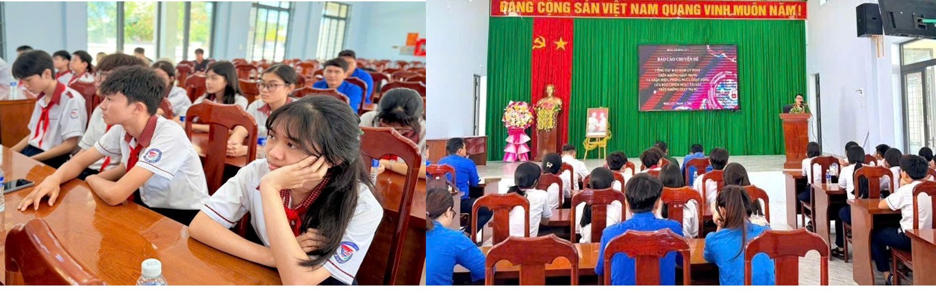Tại buổi tuyên truyền, lực lượng Công an xã đã đưa ra nhiều vụ việc cụ thể làm dẫn chứng để đoàn viên, học sinh nâng cao cảnh giác. Đồng thời phổ biến các thủ đoạn lừa đảo phổ biến hiện nay như: mạo danh cơ quan chức năng; lừa đảo tình cảm để dụ dỗ đầu tư vào các sàn tài chính giả mạo; chiếm quyền tài khoản mạng xã hội; lừa đảo trúng thưởng; phát tán mã độc qua đường link, ứng dụng; cho vay tiền online; lợi dụng công nghệ Deepfake, trí tuệ nhân tạo (AI); tuyển cộng tác viên làm việc nhẹ lương cao; lập fanpage giả mạo để lừa đảo…