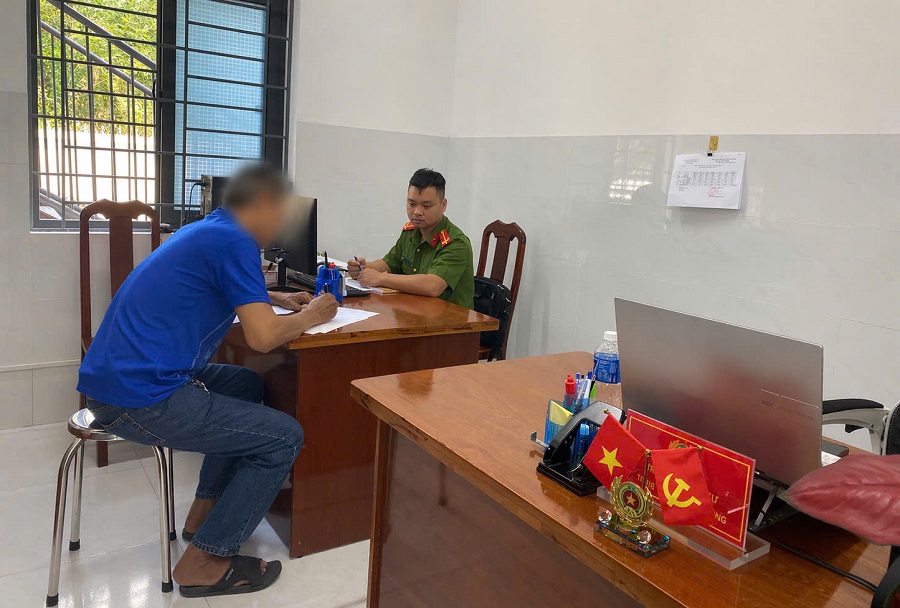 Cán bộ Công an xã trực tiếp làm việc các đối tượng tại trụ sở