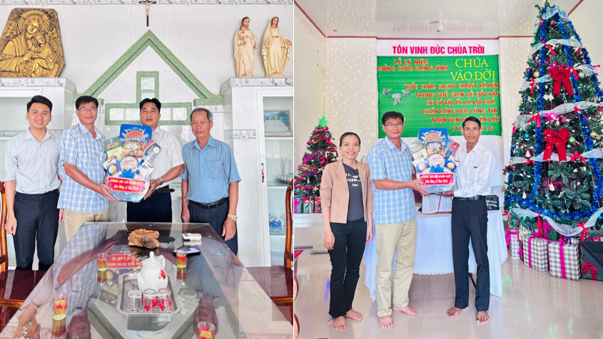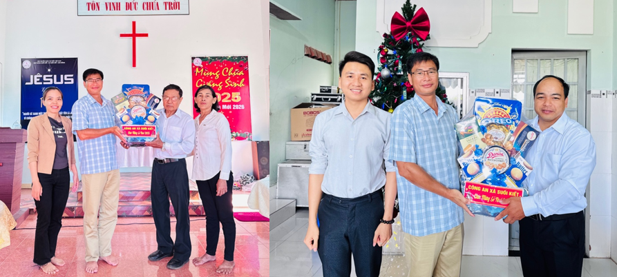 Công an xã Suối Kiết thăm, tặng quà chúc mừng các cơ sở Công giáo, Tin lành