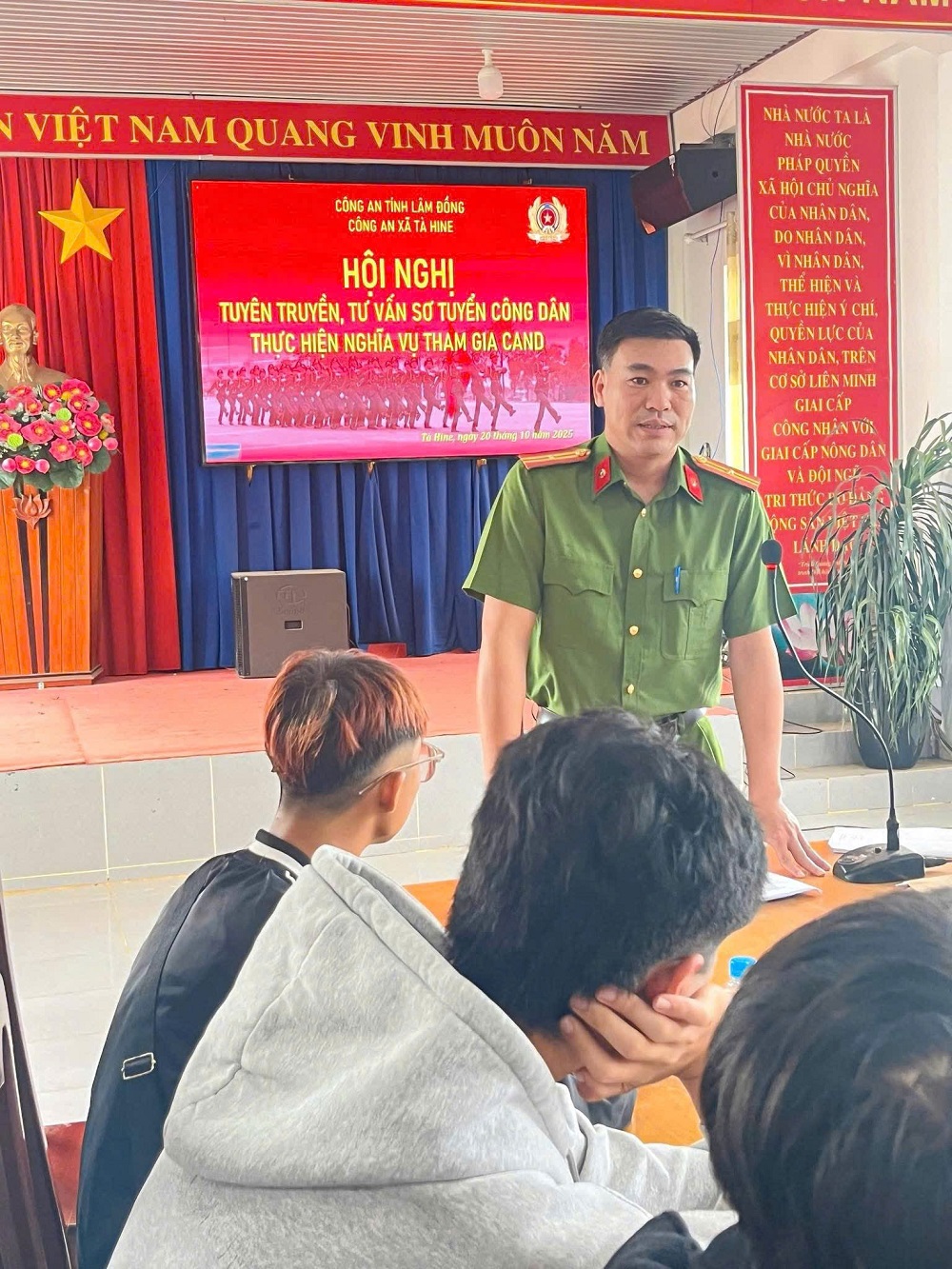 Cán bộ Công an xã Tà Hine cung cấp những nội dung liên quan đến công tác tuyển chọn công dân tham gia nghĩa vụ Công an nhân dân
