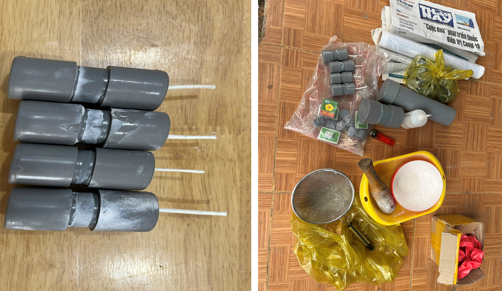 Công an xã thu giữ pháo tự chế và nguyên, vật liệu dùng để chế tạo pháo