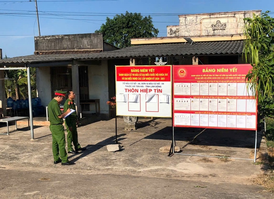 Song song với công tác tập huấn, lực lượng Công an xã tăng cường tuần tra, kiểm soát tại các khu vực niêm yết danh sách cử tri và ứng cử viên; thường xuyên túc trực bảo vệ, kịp thời phát hiện, ngăn chặn các hành vi xâm hại, bôi bẩn hoặc tháo gỡ trái phép các bảng niêm yết; đẩy mạnh công tác quản lý địa bàn, kiểm tra tạm trú, tạm vắng và rà soát các đối tượng nghi vấn xung quanh khu vực bầu cử đồng thời thiết lập cơ chế thông tin liên lạc chặt chẽ từ cấp xã đến các tổ dân cư nhằm kịp thời nắm bắt, xử lý các tình huống phát sinh liên quan đến an ninh, trật tự.