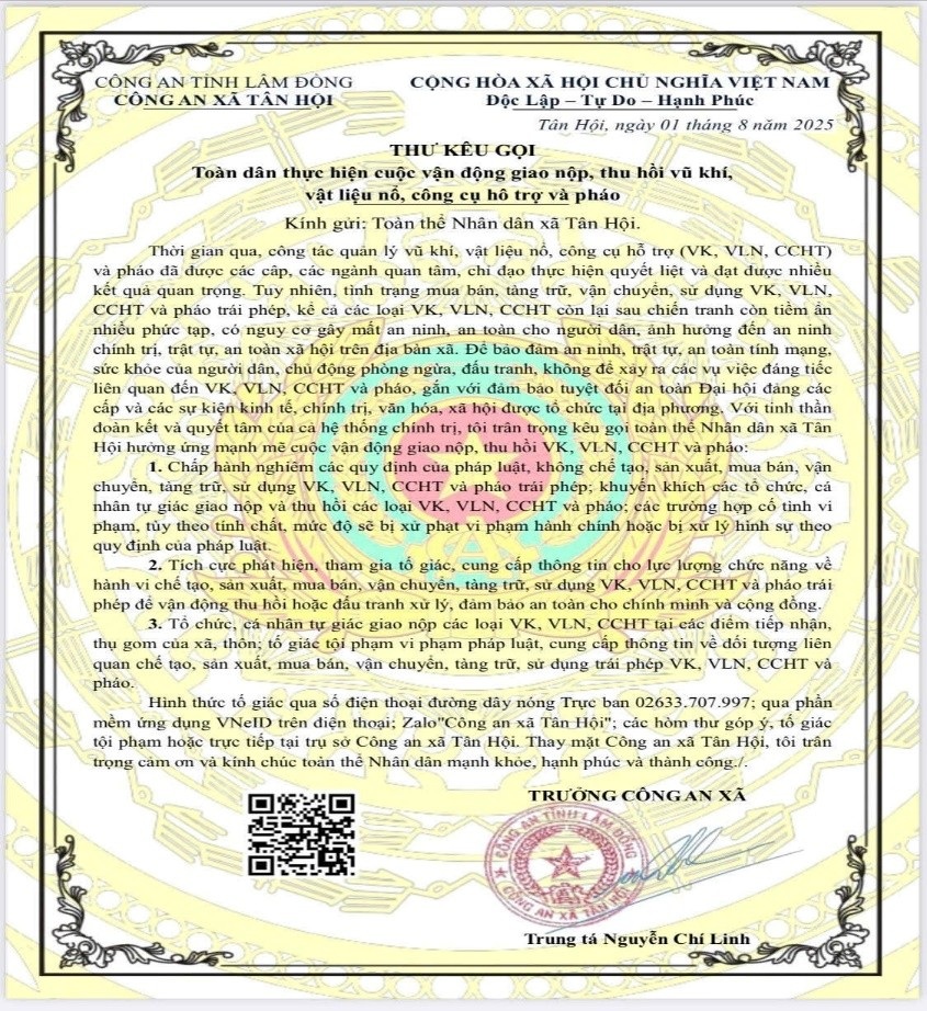 Thư kêu gọi của đồng chí Trưởng Công an xã gửi đến Nhân dân