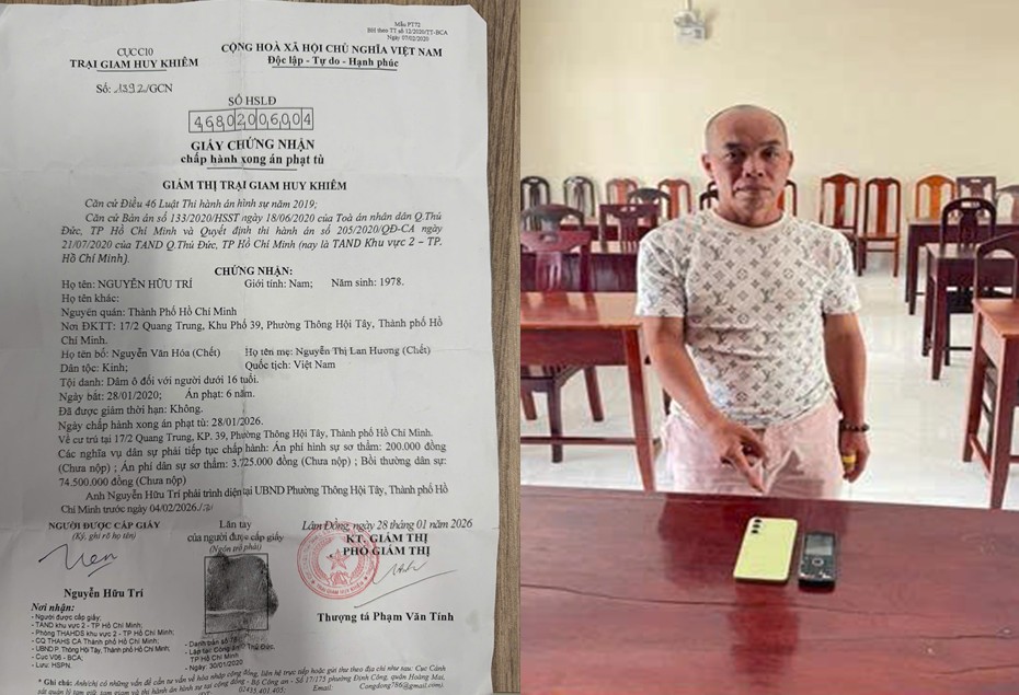 Cụ thể, ngày 29/01/2026, trong quá trình di chuyển về nhà, đối tượng đi bộ đến địa bàn xã Tân Minh, tỉnh Lâm Đồng (cách Trại giam Huy Khiêm khoảng 40 km) và lợi dụng sơ hở của người dân để thực hiện hành vi trộm cắp 02 điện thoại di động các loại, ước tính tổng giá trị tài sản khoảng 8.000.000 đồng. Được biết, Nguyễn Hữu Trí có 01 tiền án về tội “Dâm ô đối với người dưới 16 tuổi”.
