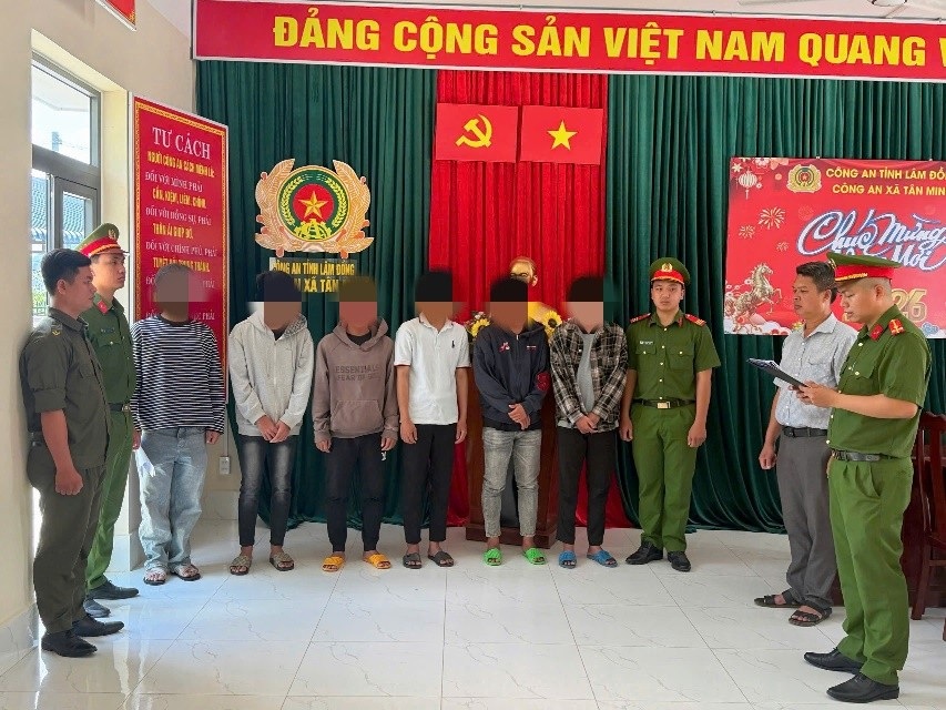 Căn cứ tài liệu, chứng cứ thu thập được, Cơ quan Cảnh sát điều tra Công an xã Tân Minh đã ra quyết định khởi tố bị can đối với Phạm Lê Việt An (SN 2004), Phạm Gia Kiệt (SN 2008), Nguyễn Văn Minh (SN 2009), Nguyễn Bảo Gia Khang (SN 2003), Lưu Quốc Đạt (SN 1999) cùng thường trú tại xã Tân Minh về tội “Gây rối trật tự công cộng” theo điểm b, khoản 2, Điều 318 Bộ luật Hình sự. Đồng thời khởi tố bị can đối với Võ Văn Phú Yên (SN 2001) thường trú tại xã Tân Minh về tội “Cố ý gây thương tích” theo điểm a, khoản 1, Điều 134 Bộ luật Hình sự.