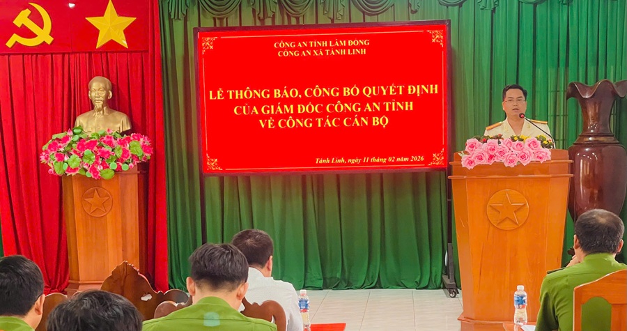 Tại buổi Lễ, thừa ủy quyền của Giám đốc Công an tỉnh, Công an xã Tánh Linh đã thông báo Quyết định điều động đồng chí Trung tá Nguyễn Văn Nam – Phó Trưởng Công an xã Tánh Linh đến nhận công tác và giữ chức vụ Phó Trưởng Công an xã Nghị Đức; đồng thời công bố Quyết định điều động đồng chí Thiếu tá Lê Trần Văn Minh – Phó Trưởng Công an xã Nghị Đức đến nhận công tác và giữ chức vụ Phó Trưởng Công an xã Tánh Linh kể từ ngày 06/02/2026.