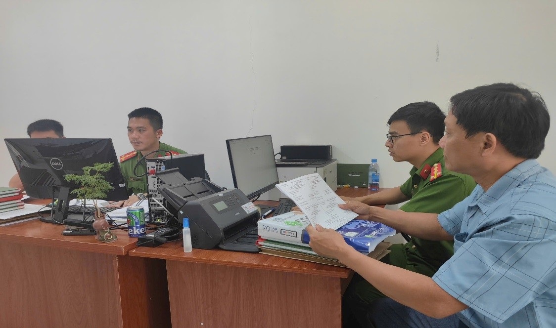 Công an xã Thuận An phối hợp với Phòng Văn hóa - Xã hội xã tiến hành in thẻ cử tri