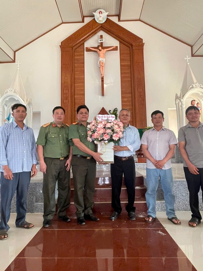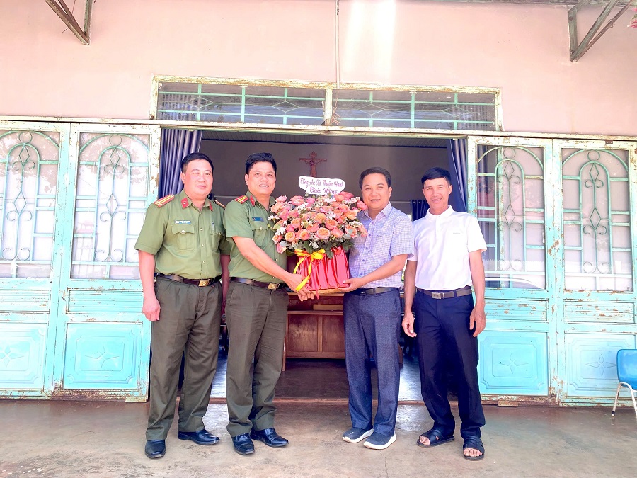 Theo đó, lực lượng Công an xã đã tăng cường nắm tình hình, tổ chức tuần tra, kiểm soát, phân luồng giao thông, phòng chống cháy, nổ; phối hợp các lực lượng bảo đảm an ninh, trật tự trên địa bàn. Đồng thời, tổ chức thăm hỏi, tặng quà, gửi lời chúc mừng đến các vị chức sắc, chức việc và bà con giáo dân, ghi nhận những đóng góp tích cực trong phong trào toàn dân bảo vệ an ninh Tổ quốc.
