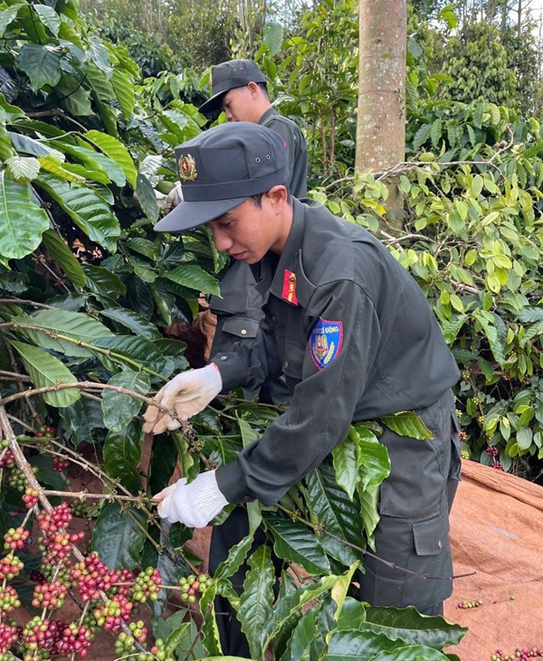 Cán bộ, chiến sĩ hỗ trợ Nhân dân thu hoạch cà phê