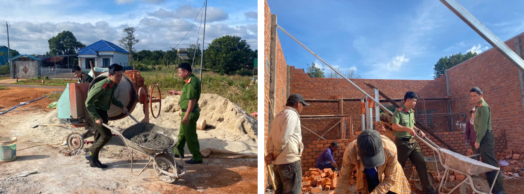 Cán bộ, chiến sĩ Công an xã hỗ trợ Nhân dân xây dựng nhà