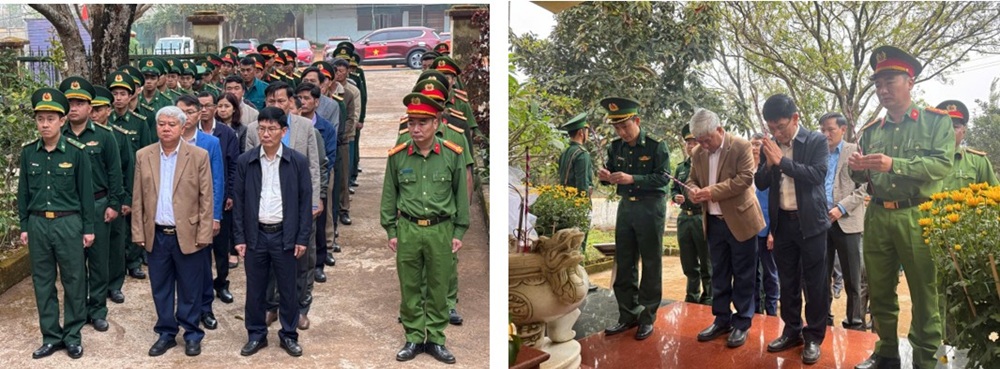Công an xã cùng lãnh đạo địa phương và các lực lượng vũ trang dâng hương tưởng niệm các anh hùng liệt sĩ