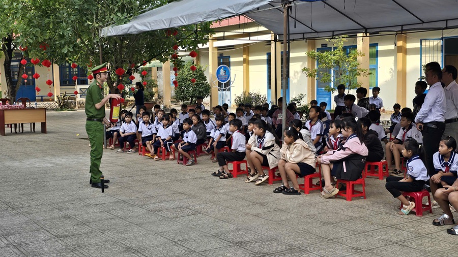 Công an xã Trà Tân tuyên truyền về pháo tự chế cho học sinh