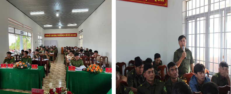 Các đồng chi là Bí thư, thôn trưởng các thôn, bon, bản và lực lượng tham gia bảo vệ ANTT ở cơ sở tham gia nhiều ý kiến đóng góp tâm huyết nội dung liên quan đến công tác bảo đảm ANTT trên địa bàn, công tác xây dựng lực lượng của Công an xã; kiện toàn nhân sự đảm bảo chế độ chính sách, hướng dẫn, bồi dưỡng nghiệp vụ cho lực lương tham gia bảo vệ ANTT ở cơ sơ… Đồng thời, mong muốn thắt chặt hơn nữa mối quan hệ phối hợp với lực lượng Công an xã nhằm giữ vững an ninh chính trị, góp phần thúc đẩy phát triển kinh tế, xã hội của xã Trường Xuân trong thời kỳ mới.