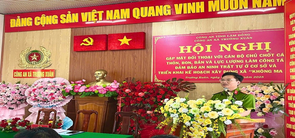 Tại Hội nghị, Công an xã Trường Xuân đã báo cáo tình hình tổ chức bộ máy, chức năng nhiệm vụ của Công an xã sau sáp nhập; đánh giá tình hình an ninh, trật tự trên địa bàn xã khi mở rộng về địa giới hành chính và triển khai Kế hoạch xây dựng xã không có ma túy. Đặc biệt nhấn mạnh vai trò quan trọng của cán bộ chủ chốt các thôn, bon, bản và lực lượng tham gia bảo vệ ANTT ở cơ sở trong công tác phối hợp bảo đảm an ninh chính trị, trật tự an toàn xã hội; đấu tranh phòng chống tội phạm, tệ nạn xã hội và các hành vi vi phạm pháp luật tại địa phương.
