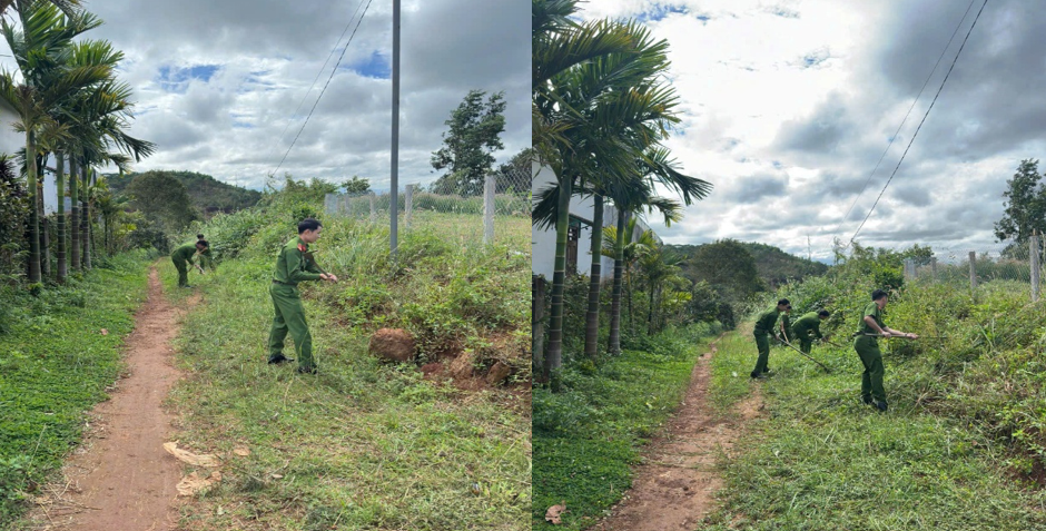 Cán bộ, chiến sĩ phát quang bụi rậm, tạo cảnh quan sạch đẹp xung quanh trụ sở