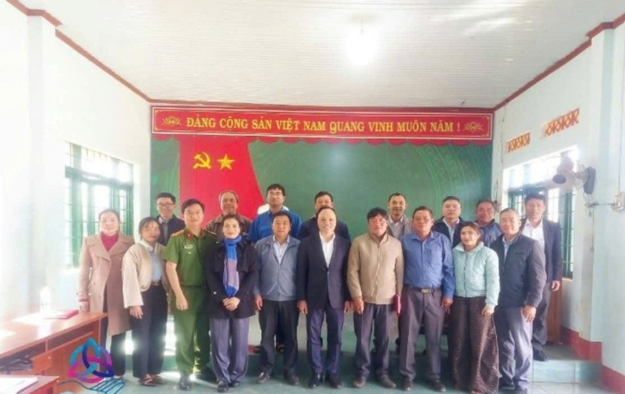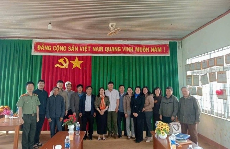Đoàn công tác chụp hình lưu niệm với đại diện các thôn, bon, bản trên địa bàn