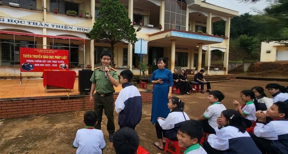 Tại buổi tuyên truyền, Trung tá Trần Duy Quyền – Phó Trưởng Công an xã Trường Xuân đã giới thiệu cho học sinh các dấu hiệu nhận biết hành vi đáng ngờ trên mạng như: người lạ gửi tin nhắn làm quen, tặng quà, rủ đi chơi; tài khoản mạng xã hội không rõ danh tính, thường xuyên hỏi thông tin cá nhân (địa chỉ, trường học, số điện thoại…); hoặc các đường link, trò chơi, cuộc thi hứa hẹn “phần thưởng hấp dẫn” nhằm đánh cắp dữ liệu.