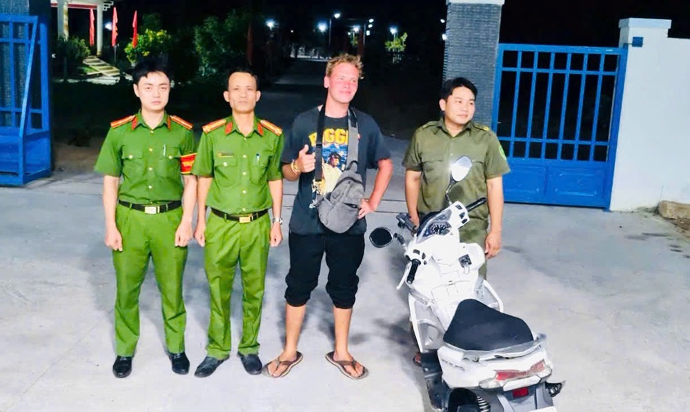 Công an xã Tuy Phong đã chuẩn bị bữa tối, hỗ trợ sạc pin điện thoại và hướng dẫn đường đi cho ông Mendez