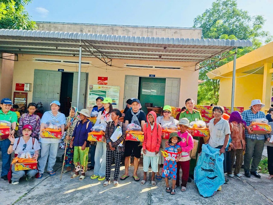 Công an xã Tuy Phong vận động mạnh thường quân tặng quà cho các hộ gia đình có hoàn cảnh khó khăn