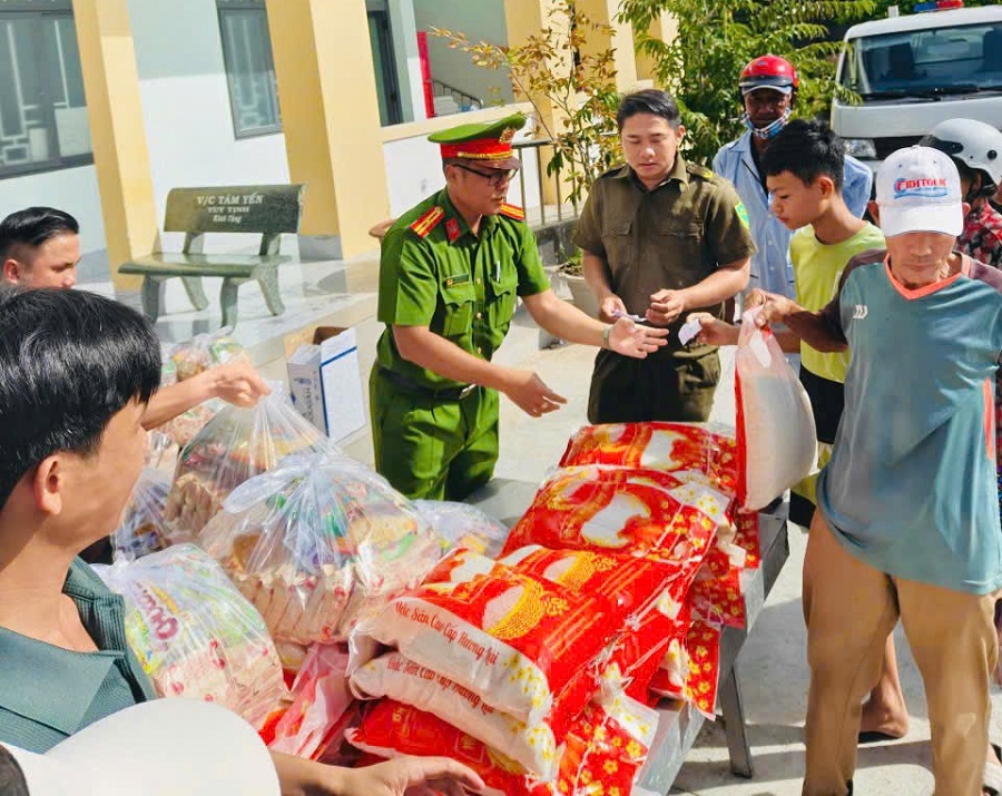 Công an xã vận động mạnh thường quân tặng quà cho các hộ gia đình có hoàn cảnh khó khăn tại thôn Tuy Tịnh