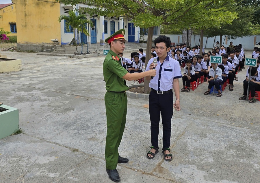 Công an xã Tuy Phong tổ chức tuyên truyền Luật ATGT tại các trường THCS trên địa bàn