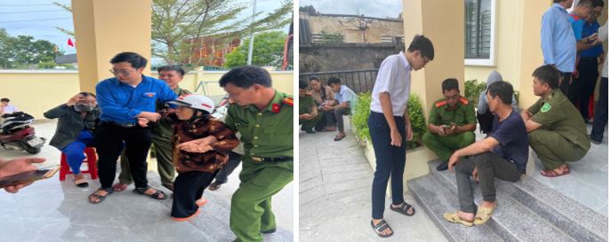 Cán bộ Công an xã cùng đoàn viên, thanh niên hỗ trợ, hướng dẫn bà con nhân dân