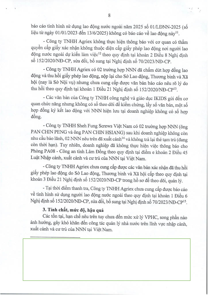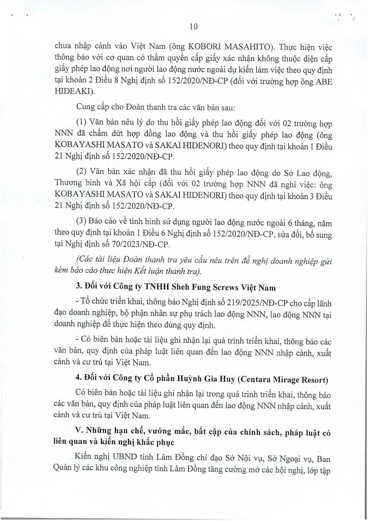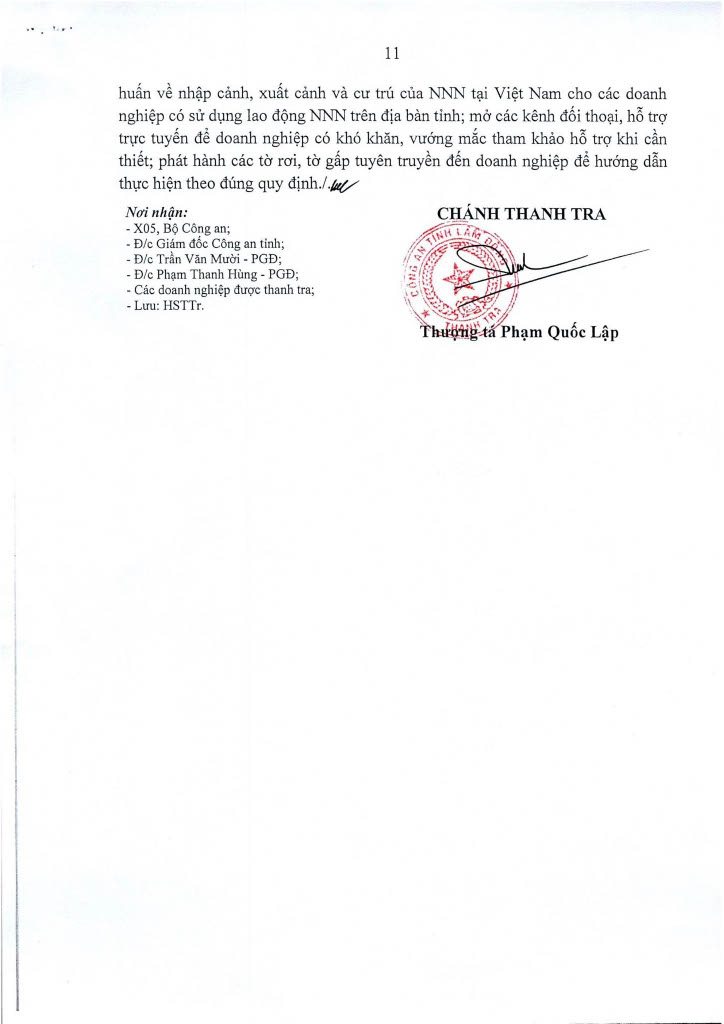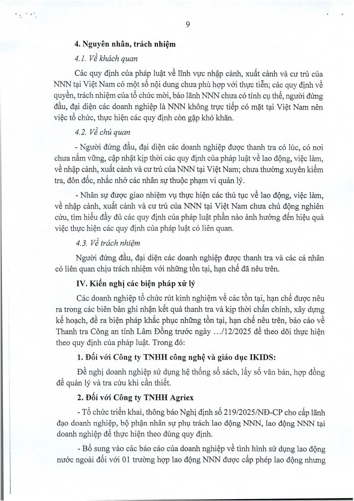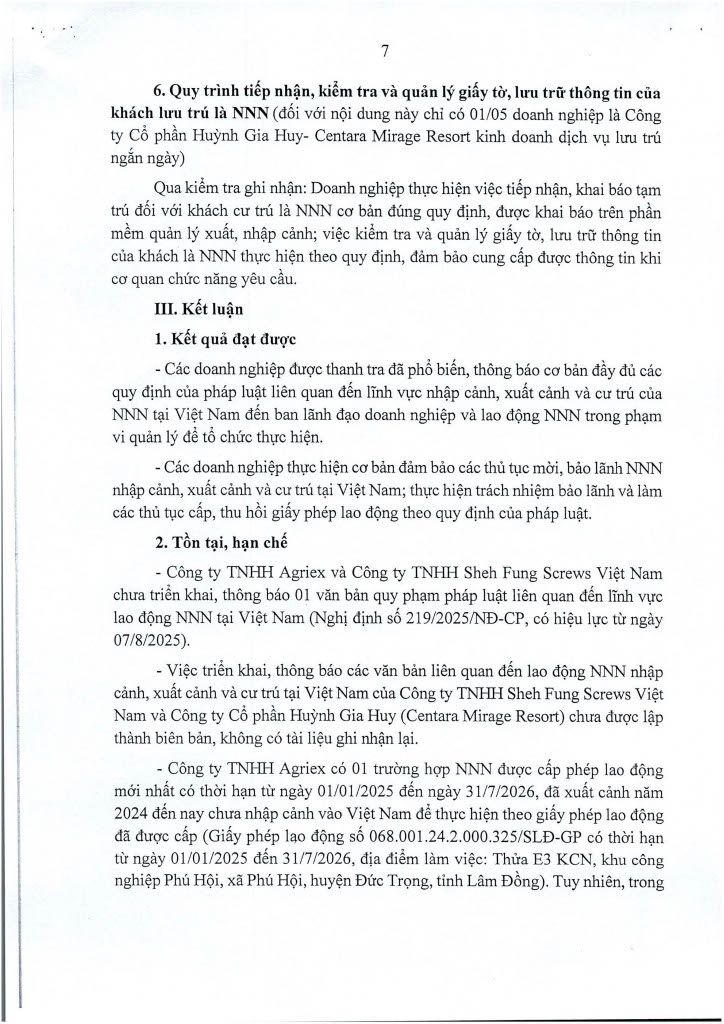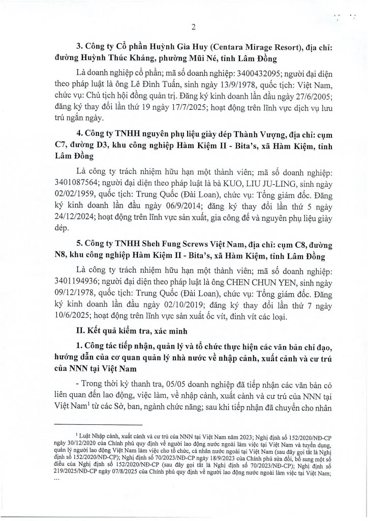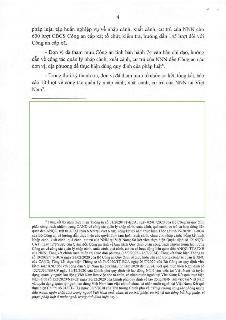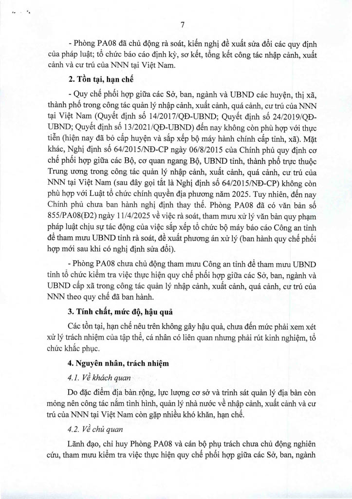 Ngày 14/11/2025, Thanh tra Công an tỉnh ban hanh 02 Kết luận thanh tra số 435/KL-PX05 và 436/KL-PX05 về thanh tra việc chấp hành các quy định của pháp luật về nhập cảnh, xuất cảnh và cư trú của người nước ngoài tại Việt Nam. Căn cứ Điều 37 Luật Thanh tra năm 2025 về công khai Kết luận thanh tra, Trang Thông tin điện tử Công an tỉnh Lâm Đồng đăng tải toàn văn 02 Kết luận đến toàn thể cán bộ, đảng viên và quần chúng nhân dân. Thanh tra Công an tỉnh
