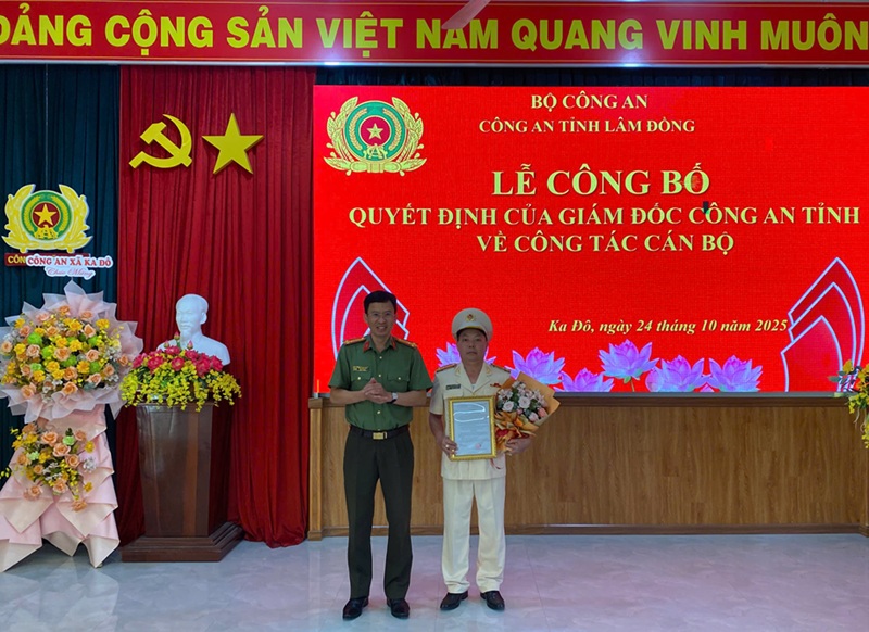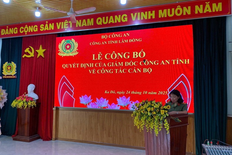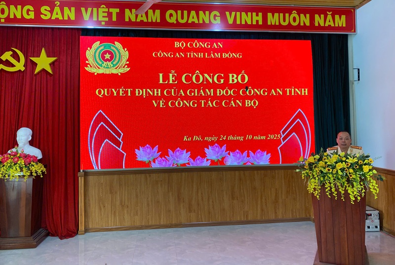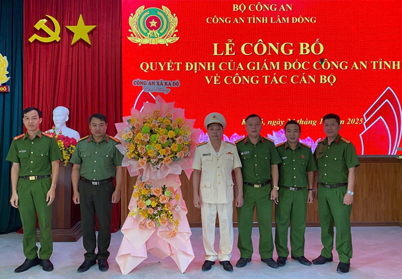 Tại buổi lễ, đại diện lãnh đạo Phòng Tổ chức cán bộ công bố Quyết định của Giám đốc Công an tỉnh về việc điều động đồng chí Thượng tá Đào Xuân Trung – Phó Trưởng phòng Phòng An ninh đối ngoại, đến nhận công tác và giữ chức vụ Trưởng Công an xã Ka Đô.