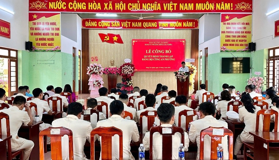 Tại buổi lễ, Ban Chấp hành Đảng bộ phường đã công bố Quyết định thành lập Đảng bộ Công an phường Đông Gia Nghĩa trực thuộc Đảng ủy phường. Đảng bộ Công an phường hiện có 71 đảng viên, hoạt động theo Điều lệ Đảng Cộng sản Việt Nam và các quy định của Trung ương, đồng thời chịu sự lãnh đạo trực tiếp, toàn diện của Đảng ủy phường.