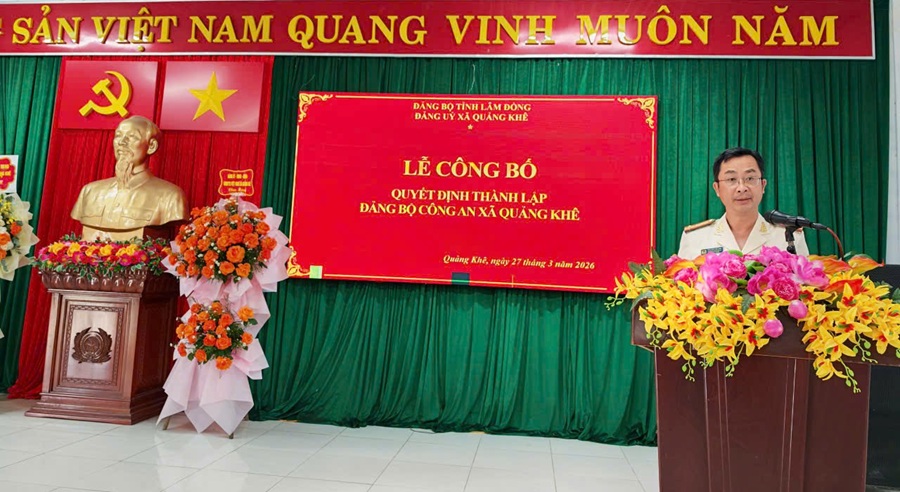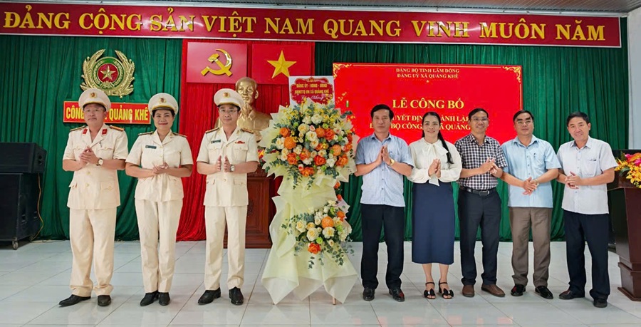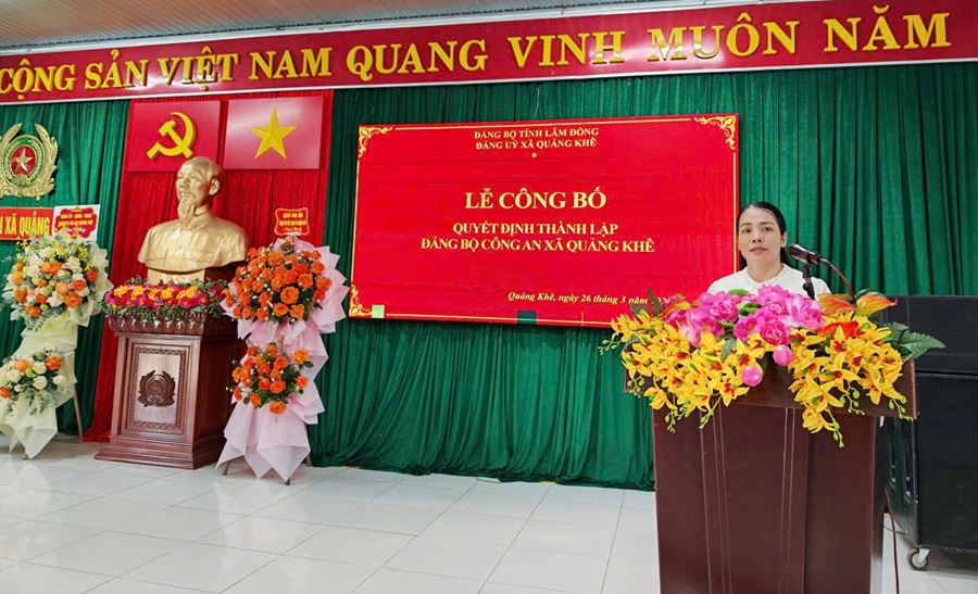 Tại buổi lễ, đồng chí Lưu Thị Ngân, Ủy viên Ban Thường vụ Đảng ủy, Trưởng ban Xây dựng Đảng đã công bố Quyết định của Đảng ủy xã Quảng Khê về việc thành lập Đảng bộ Công an xã trực thuộc Đảng ủy xã. Đảng bộ gồm 05 chi bộ trực thuộc: Chi bộ Tổng hợp; Chi bộ An ninh; Chi bộ Cảnh sát khu vực; Chi bộ Cảnh sát trật tự và Chi bộ Cảnh sát phòng, chống tội phạm.