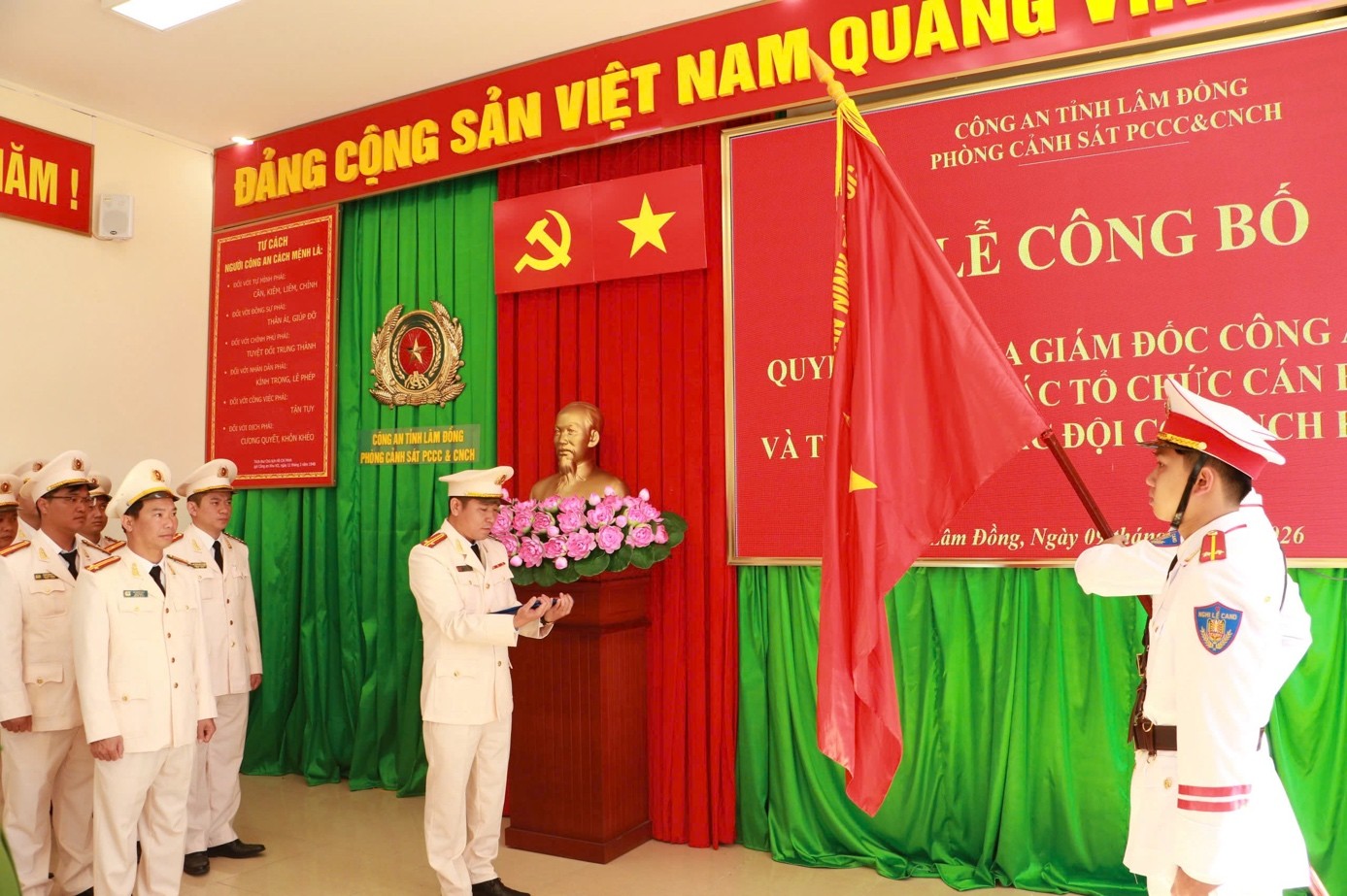 Tại buổi lễ, đại diện Ban Tổ chức đã công bố Quyết định của Giám đốc Công an tỉnh về việc tổ chức bộ máy của Phòng Cảnh sát PCCC và CNCH cùng các quyết định về bố trí, điều động, bổ nhiệm chỉ huy cấp Đội.