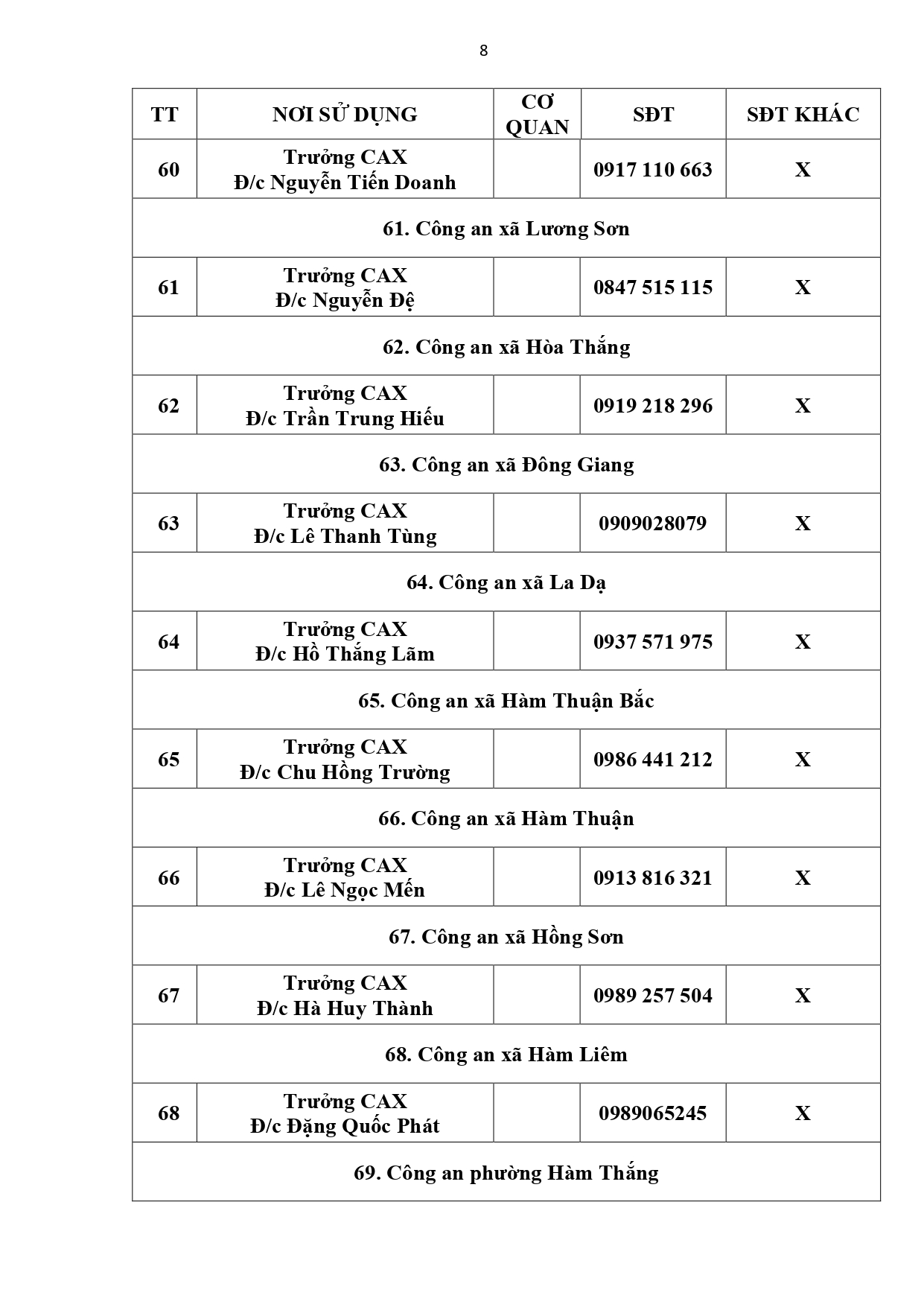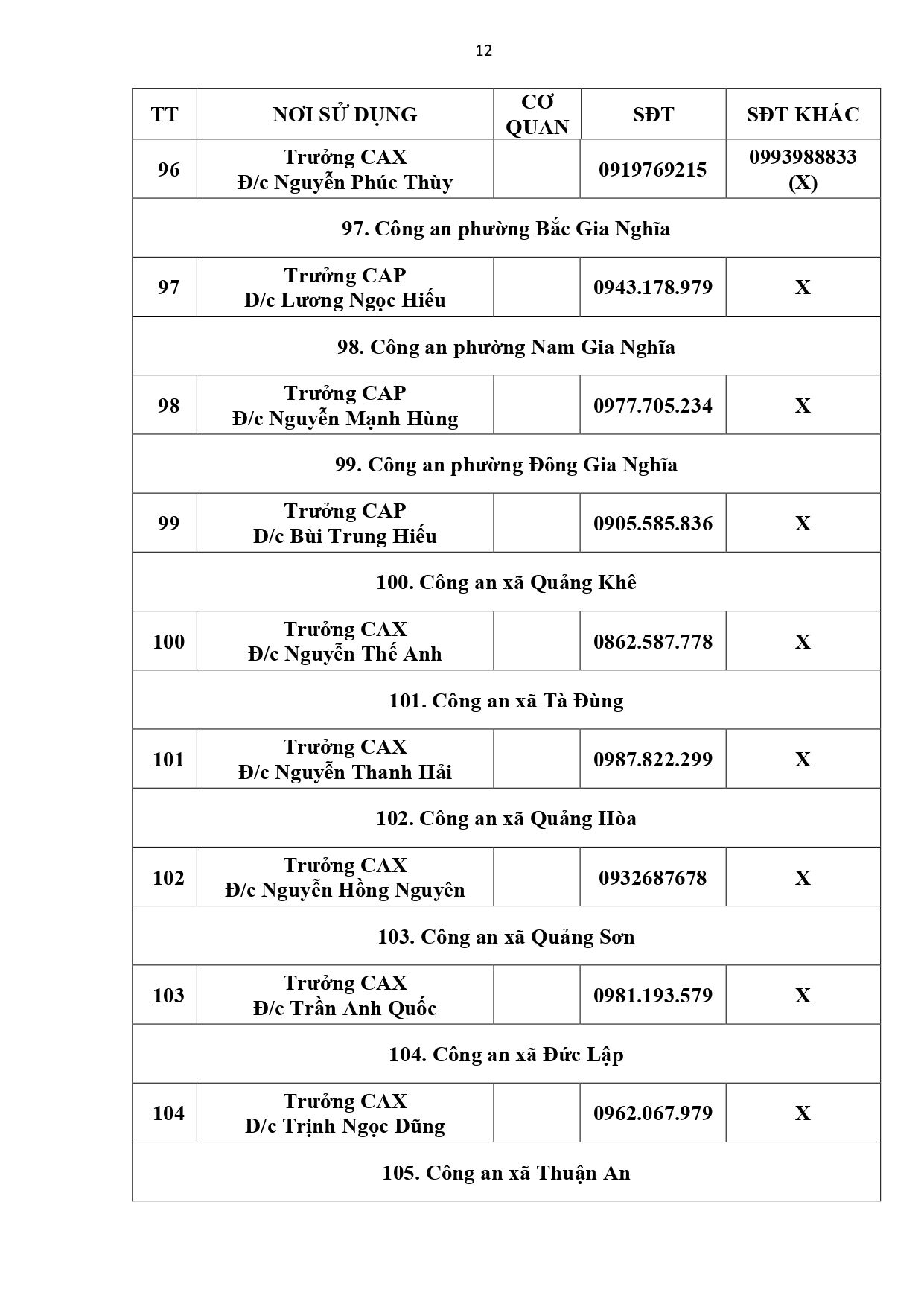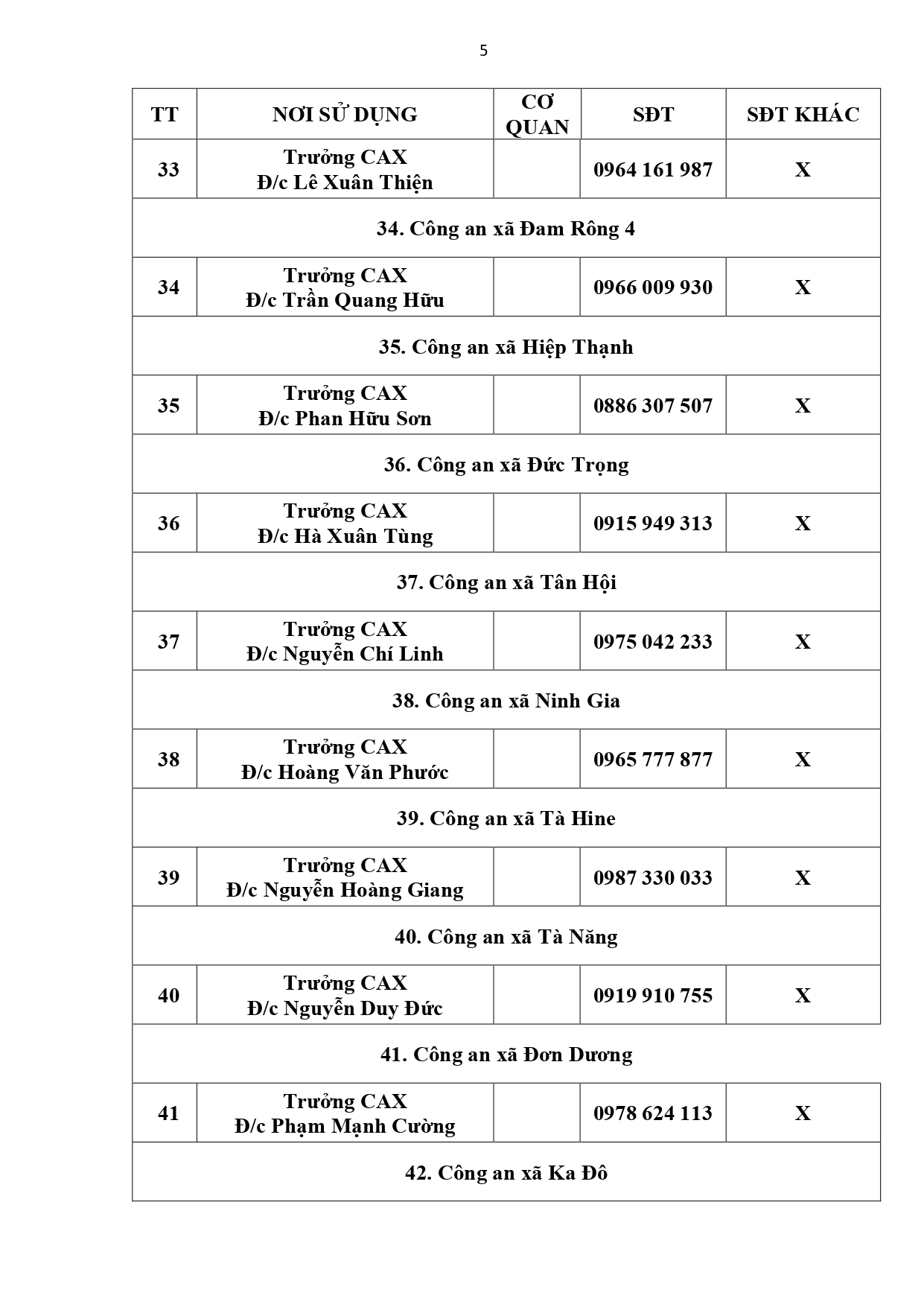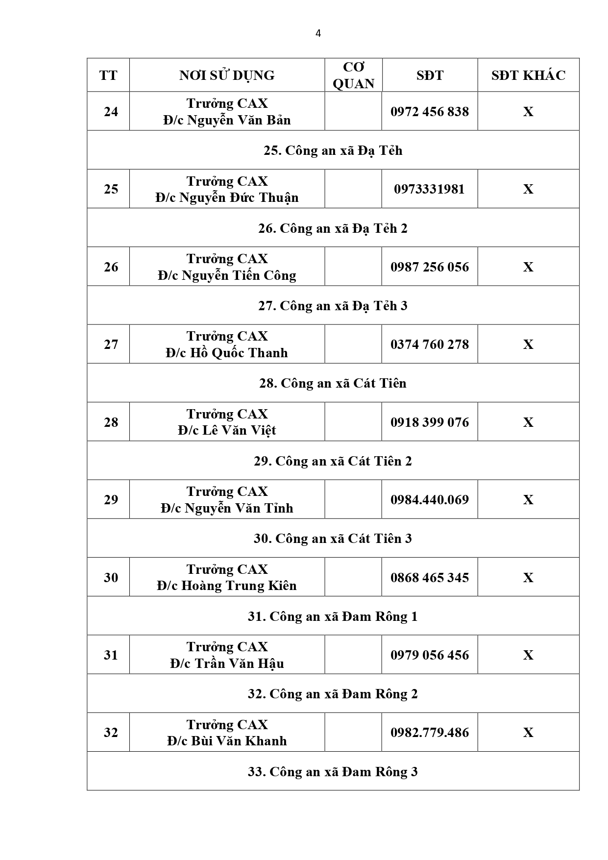 Thông báo Công bố số điện thoại đường dây nóng phục vụ công tác tiếp nhận, giải quyết đối với các vụ việc vi phạm pháp luật về ma tuý Your browser does not support the audio element.   19/12/2025 15:02 |   129 |  Thực hiện ý kiến chỉ đạo của Lãnh đạo Công an tỉnh Lâm Đồng về việc công bố danh sách số điện thoại của đồng chí Giám đốc, Phó Giám đốc, Trưởng phòng Cảnh sát điều tra tội phạm về ma tuý và Trưởng Công an cấp xã để kịp thời tiếp nhận, xử lý tố giác, tin báo và các thông tin phản ánh của người dân liên quan đến công tác phòng ngừa, đấu tranh với tội phạm về ma tuý, Trang thông tin điện tử Công an tỉnh đăng tải danh sách số điện thoại đến toàn thể Nhân dân để kịp thời tố giác tội phạm và các hành vi vi phạm pháp luật về ma tuý: Ban Biên tập Từ khóa Liên kết Danh bạ đường dây nóng phòng chống tội phạm